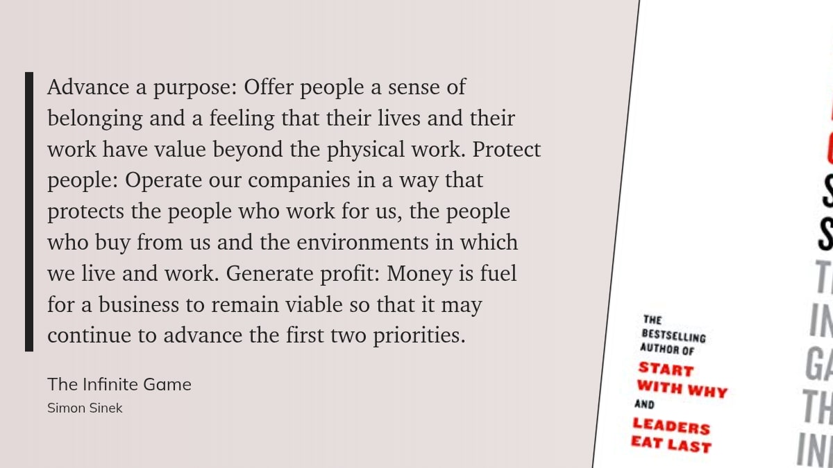 Advancing a Purpose, then, is our version of building a moat: it makes the company harder to copy, easier to trust, and more valuable over time.